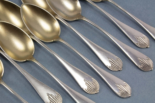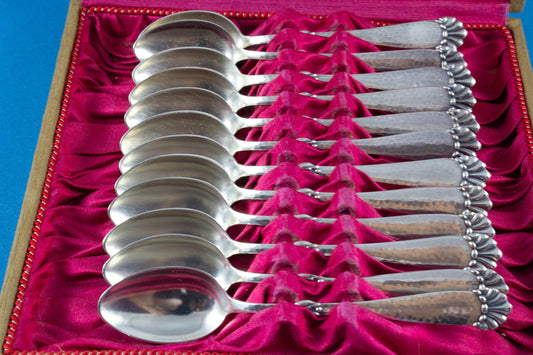 12 versilberte Teelöffel im Jugendstil, gehämmert