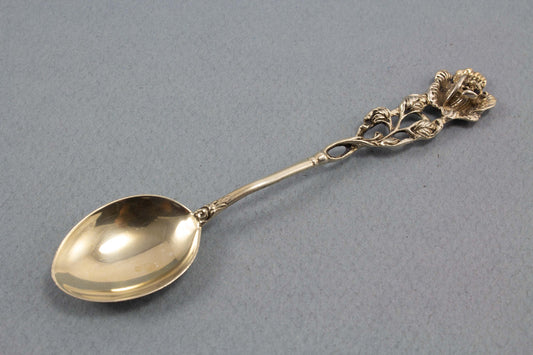 1 Silberlöffel für Mokka, 835er Espressolöffel mit Rosen, Albo