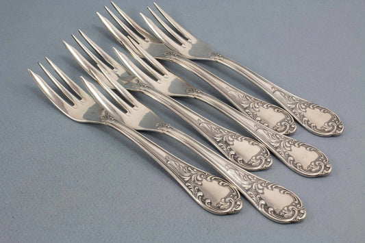 Großes Besteck Set für 6 Personen im Rokokostil, 2 Tortenheber, Sahnelöffel, Zuckerzange, 6 Kuchengabeln