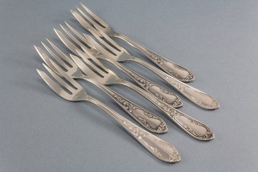 Großes Besteck Set für 6 Personen im Rokokostil, 1 Tortenheber, 6 Teelöffel, 6 Kuchengabeln, Zuckerzange