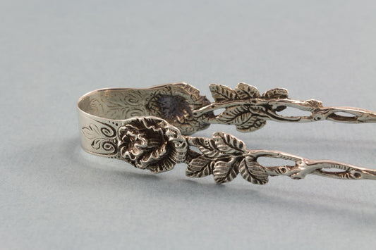 Kleine Zuckerzange mit Rosen aus 835er Silber