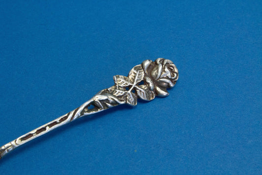 Kleiner versilberter Zuckerlöffel mit Rosenmuster