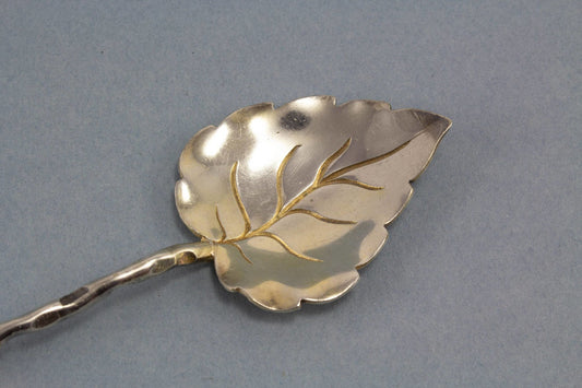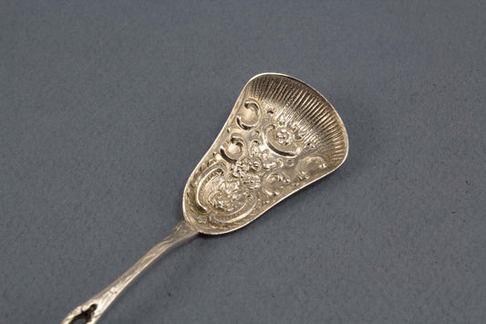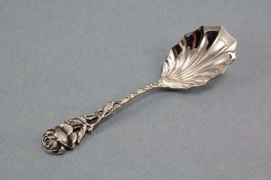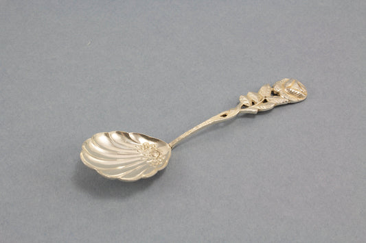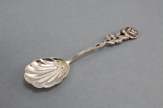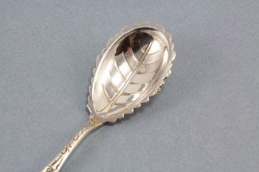 Kleiner Zuckerlöffel mit Rosenblatt, versilbertes Besteck