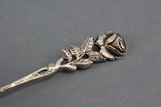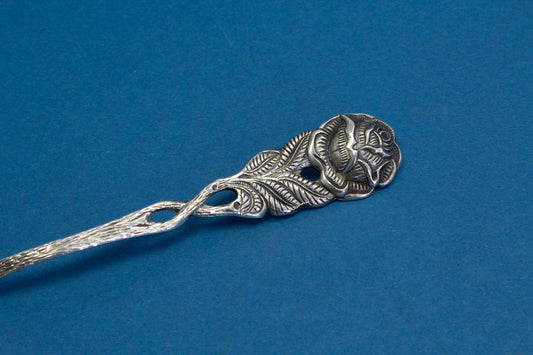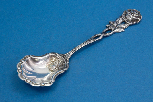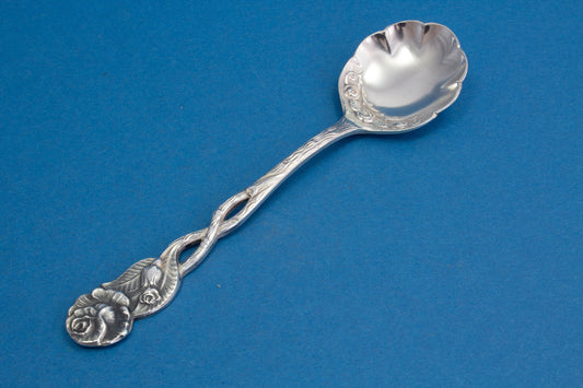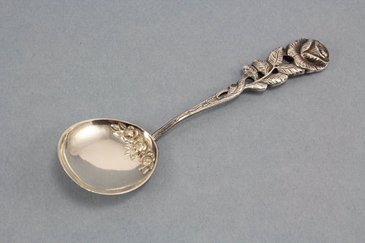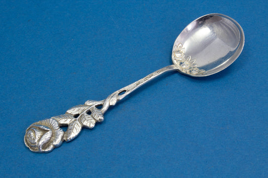 Kleiner Zuckerlöffel mit Rose, versilbertes Besteck