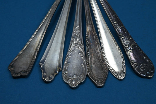 6 antike Teelöffel, versilberte Löffel im Jugendstil, Mismatched