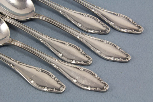 6 Löffel für Mokka 800er, Espressolöffel mit Rokokomuster