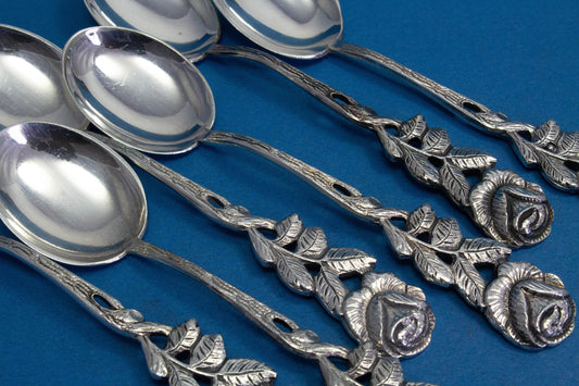 Ausverkauft6 Mokkalöffel mit Rosen, versilbert