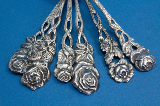6 Mokkalöffel mit verschiedenen Rosenmustern, versilbert