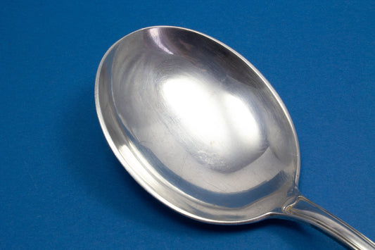 Großer Gemüselöffel, versilberter Servierlöffel, Chippendale