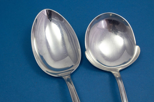 Großer Gemüselöffel mit passendem Soßenlöffel, versilberte Servierlöffel