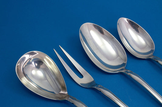 4-teiliges versilbertes WMF 2700 Servierbesteck, Fleischspieß, 2 Gemüselöffel und Saucenlöffel