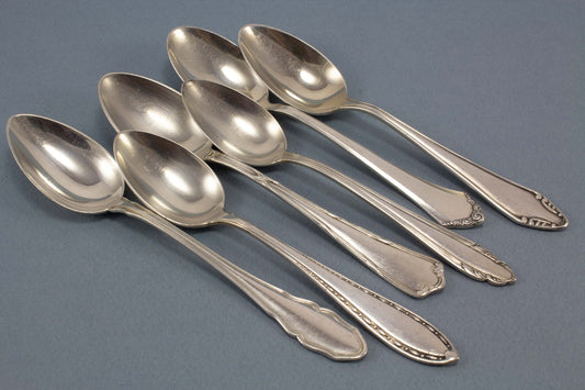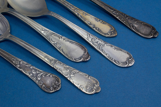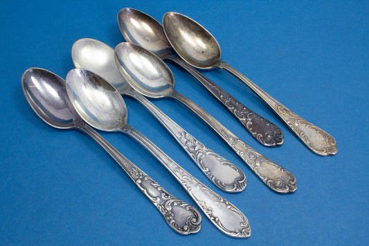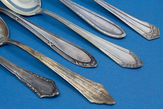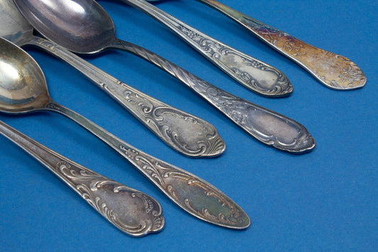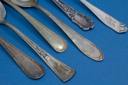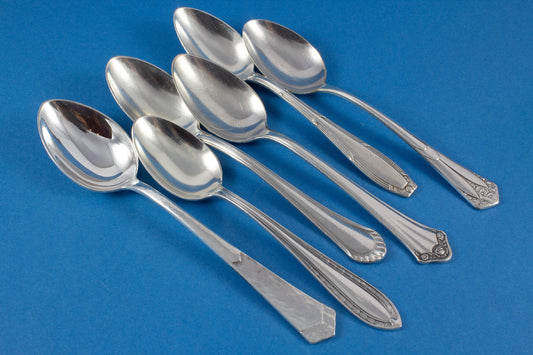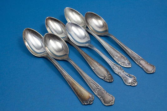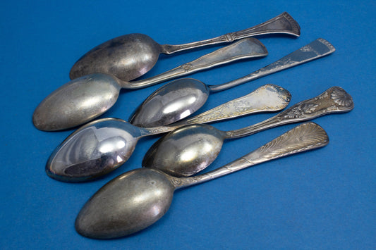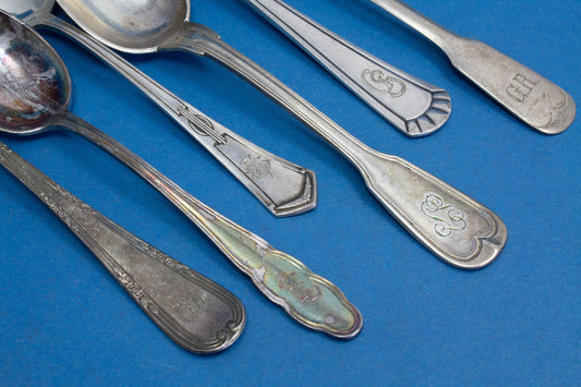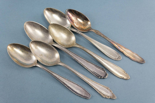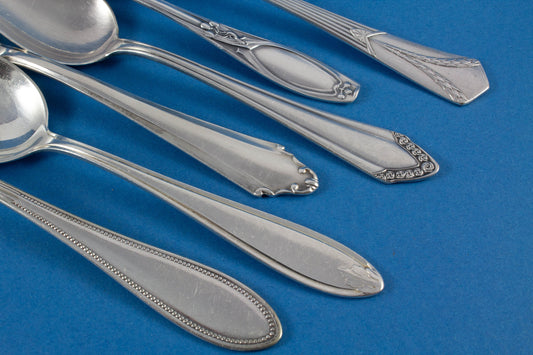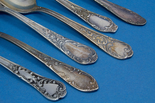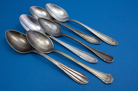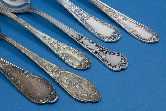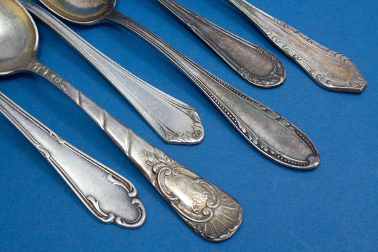 6 silver-plated teaspoons, mix and match, shabby chic, mismatched, vintage spoons