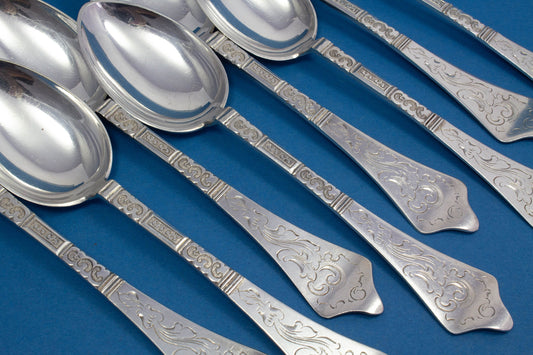 8 beautiful tablespoons, table spoons, Danish Art Nouveau