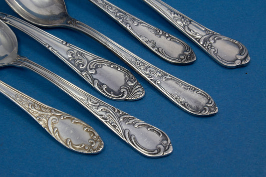 6 versilberte with Mokkalöf, kleine Rokokolöf, Mix and Match