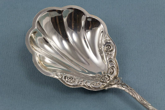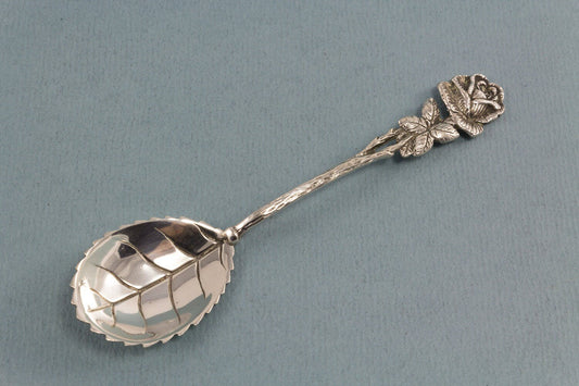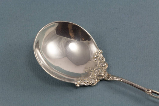 Silver sugar spoon with roses, 800 silver, Hildesheim rose