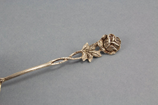 Silver cream spoon with a beautiful rose, small cream ladle