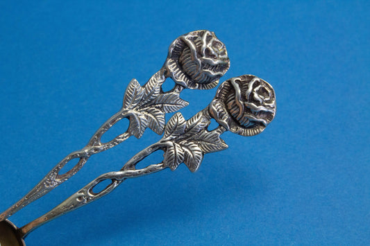 2 silver mocha spoons with a beautiful rose pattern, 800 silver