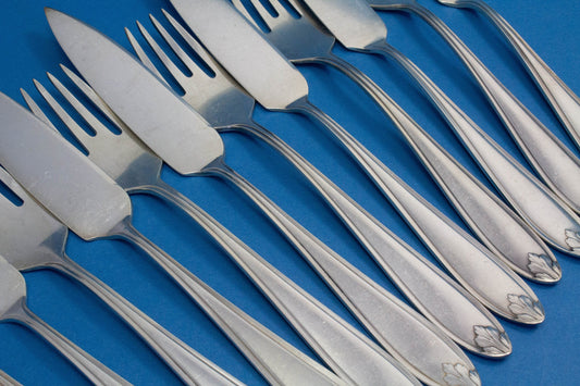 Art Nouveau fish cutlery for 6 people, WMF 1600 Akanthus, fish knives and fish forks