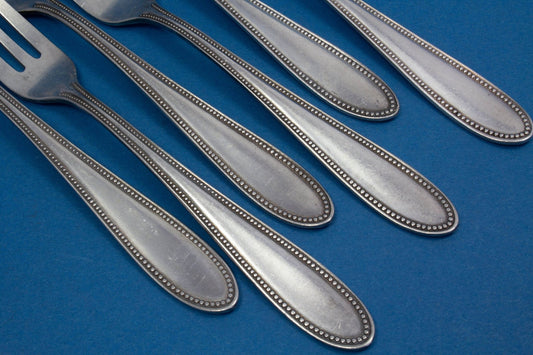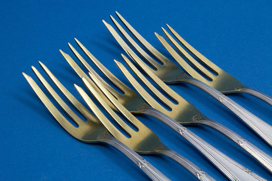 2 beautiful meat forks, Art Nouveau cutlery set, WMF 1400, lily