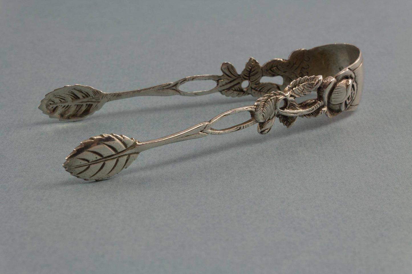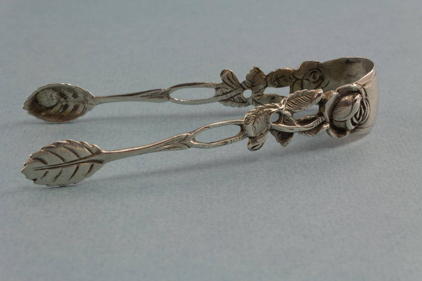 Sugar tongs, Art Nouveau rose, hallmarked with 800