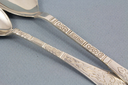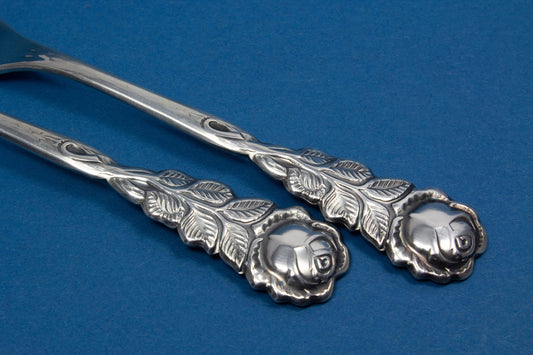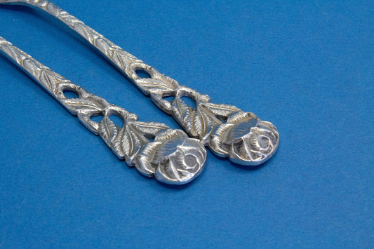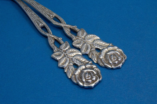 2 cucharaditas con rosas, bañadas en plata, cubiertos de plata