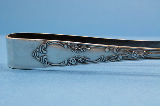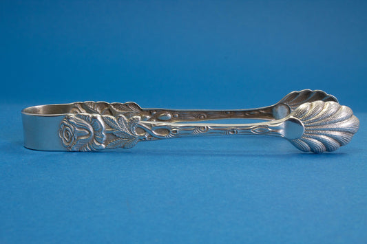 Versilberte Zuckerzange im Rokokomuster