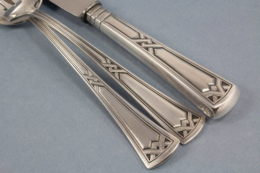 Cubiertos Art Déco bañados en plata, cuchillo para queso y cuchillo para mantequilla