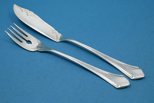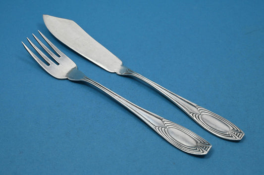Cubiertos de pescado plateados para una persona, cubiertos Art Nouveau, cuchillo de pescado, tenedor de pescado