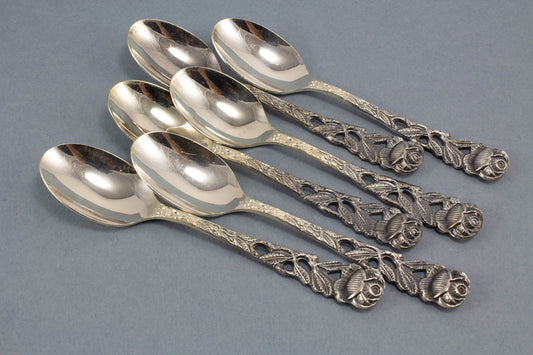 Cubertería bañada en plata con diseño de rosas para 6 personas