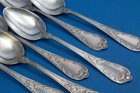6 cucharillas bañadas en plata de Wellner, diseño rococó