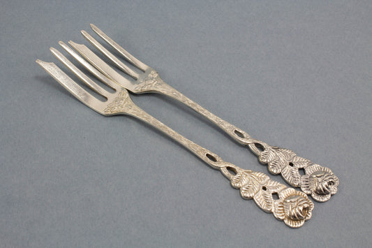 Hermosa cubertería con rosas para 2, plateada, antigua