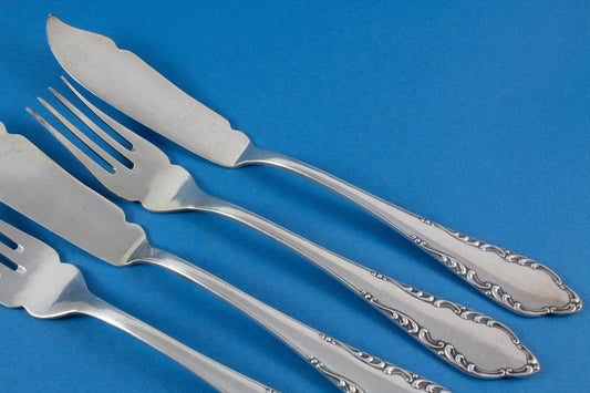 Cubiertos de pescado para 2 personas, cena a la luz de las velas, 2 tenedores de pescado, 2 cuchillos de pescado