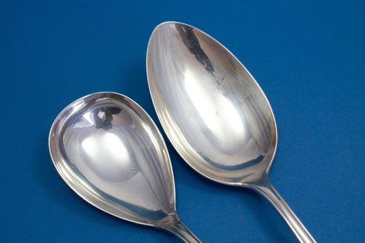 Cucharones plateados, WMF 2500 Art Deco, cucharón para salsa y cucharón para nata
