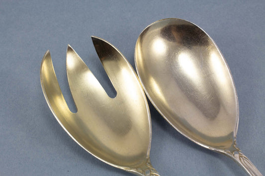 Servidores de ensalada, cubiertos para servir, Art Nouveau, plateado, tenedor de ensalada