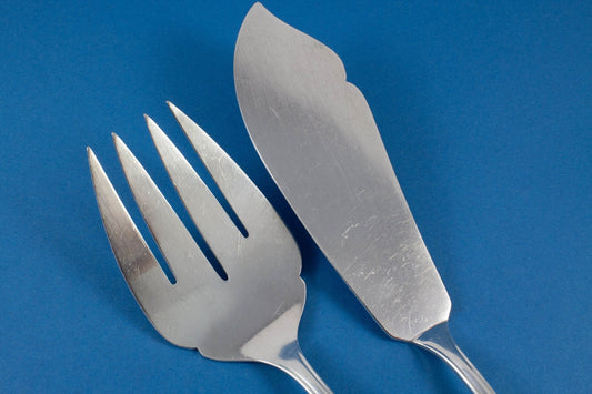 Cubiertos para servir pescado plateados de BSF, tenedor y cuchillo para servir