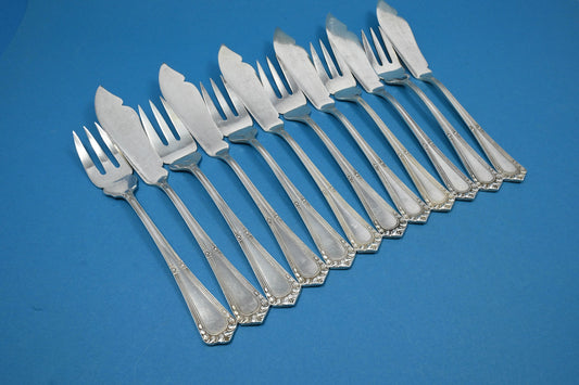 Couverts à poisson anciens pour 6 personnes de style Art Nouveau