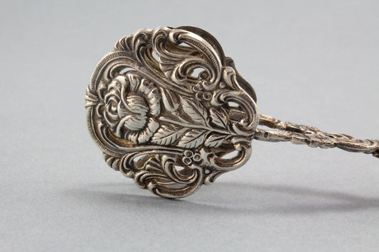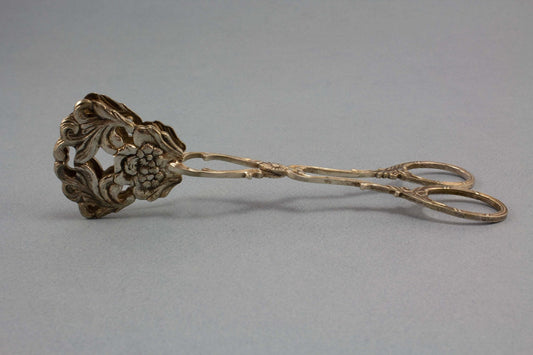 Pince à pâtisserie en métal argenté noble avec des fleurs