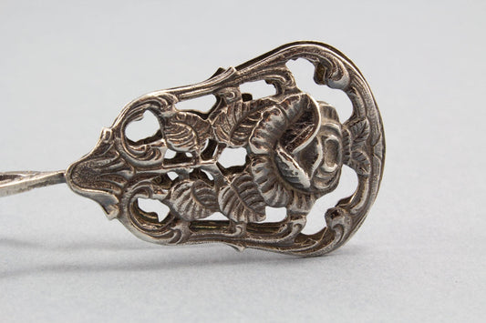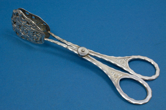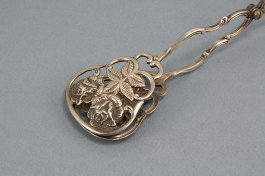 Pince à pâtisserie en métal argenté noble avec roses et motif martelé