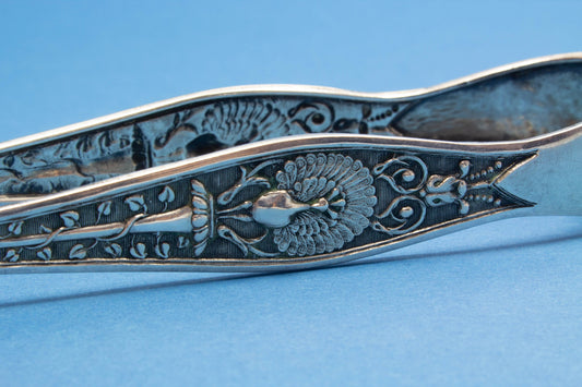 Pince en argent noble, France, poinçon tête Minerve, pince à glaçons, pince à sucre