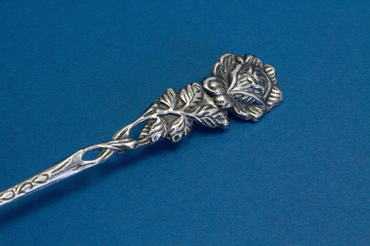 Sahnelöffel, versilberter Vintage-Löffel mit Rosen