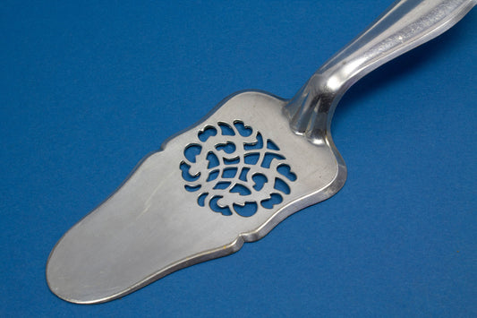 Belle petite pelle à tarte, métal argenté, fleur de lys