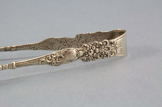 Pince à sucre en argent avec petits oiseaux en argent 800