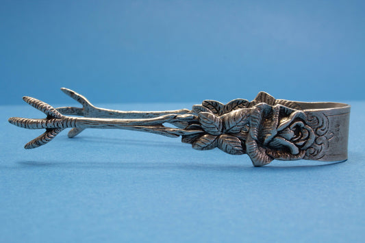 Pince à sucre en argent de style rococo, motif floral, argent 800