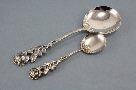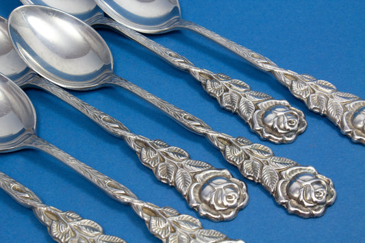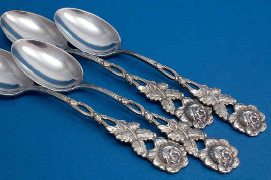 Cuillères à café motif rose, couverts plaqués argent, cuillères à café