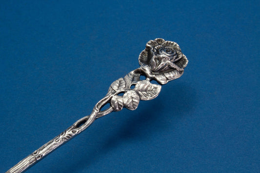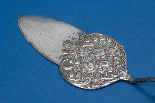 Pelle à tarte décor rose, pelle à pâtisserie en métal argenté