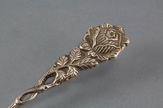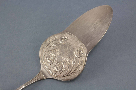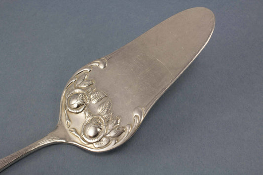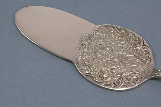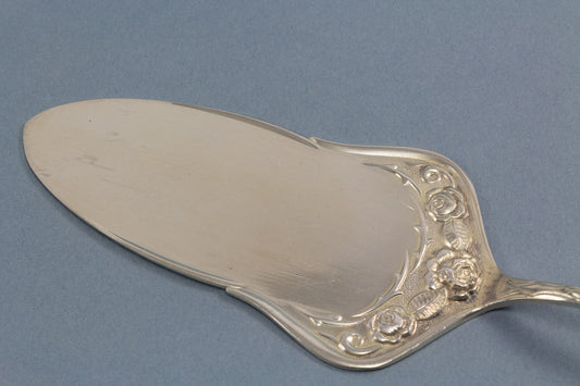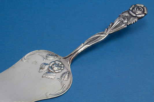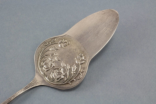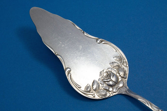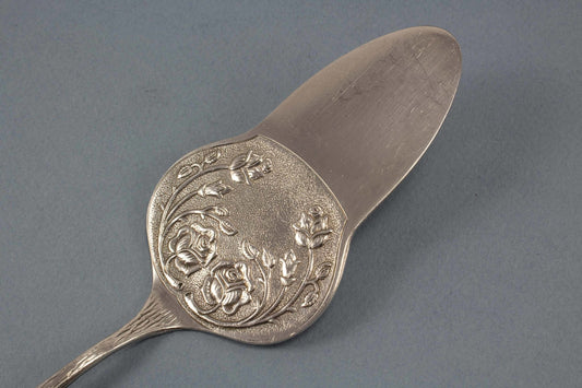 Pelle à gâteau avec décoration rose en argent, couverts en argent