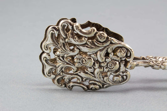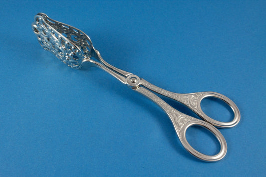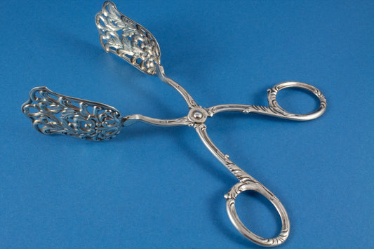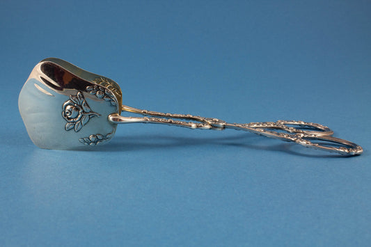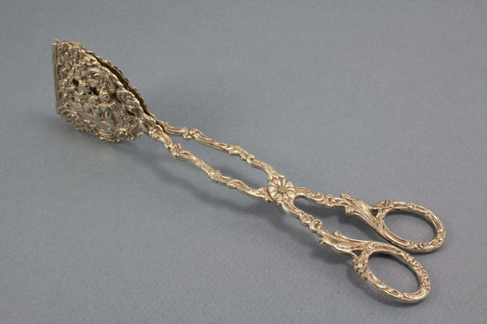 Magnifique pince à pâtisserie en métal argenté au motif Art Nouveau
