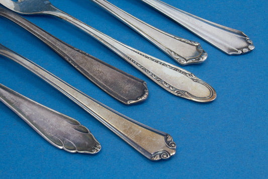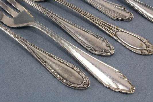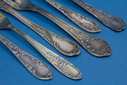 6 versilberte Kuchengabeln、Mix and Match、Mismatched、Shabby Chic、Gabel