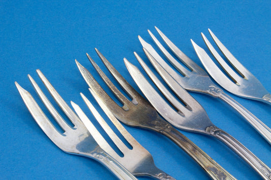 シルバーメッキのケーキフォーク6本、ミックスアンドマッチ、シャビーシック