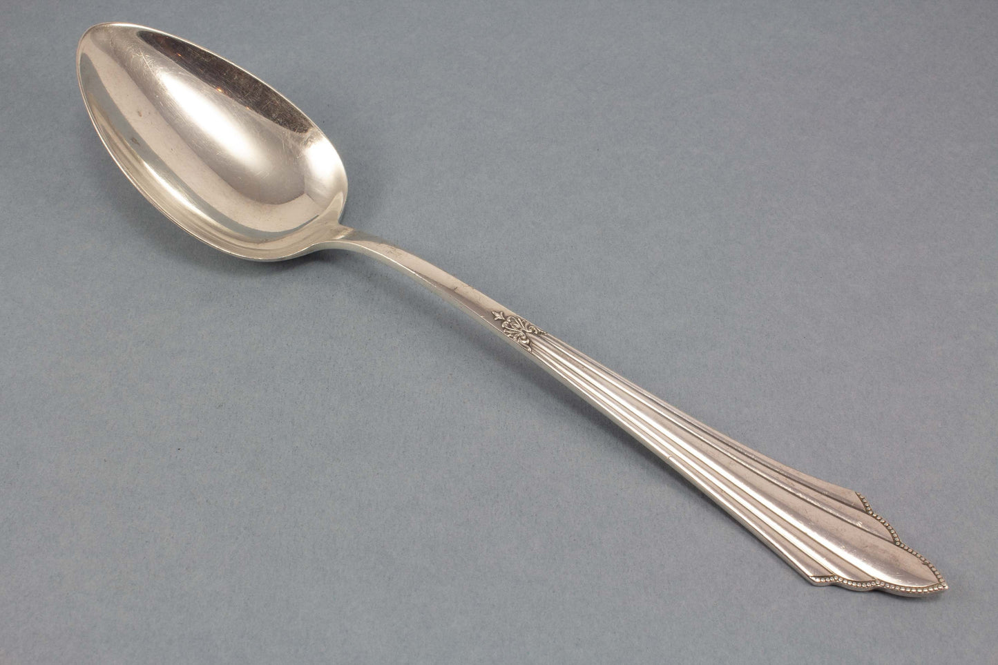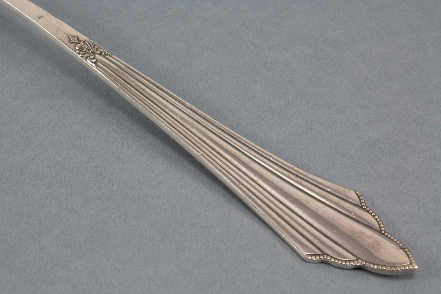この銀メッキの野菜スプーンは、WMF 900 コンパートメントの装飾を示しています。